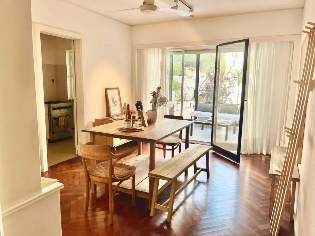 Luminoso y silencioso departamento totalmente amoblado, ubicado frente a Plaza Libertad, con patio cubierto, jardín y cochera. Un espacio único por su amplitud, tranquilidad y el entorno verde que ofrece su jardín privado.